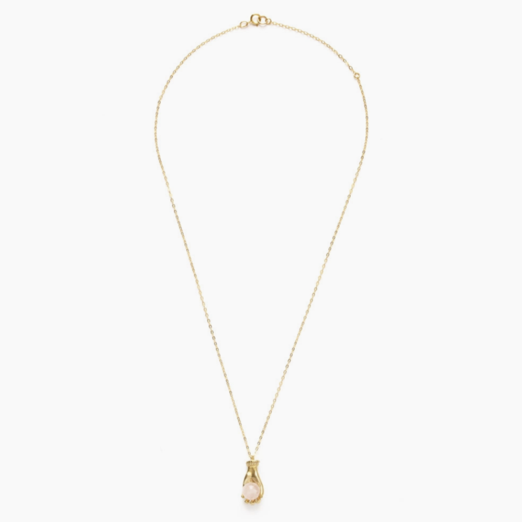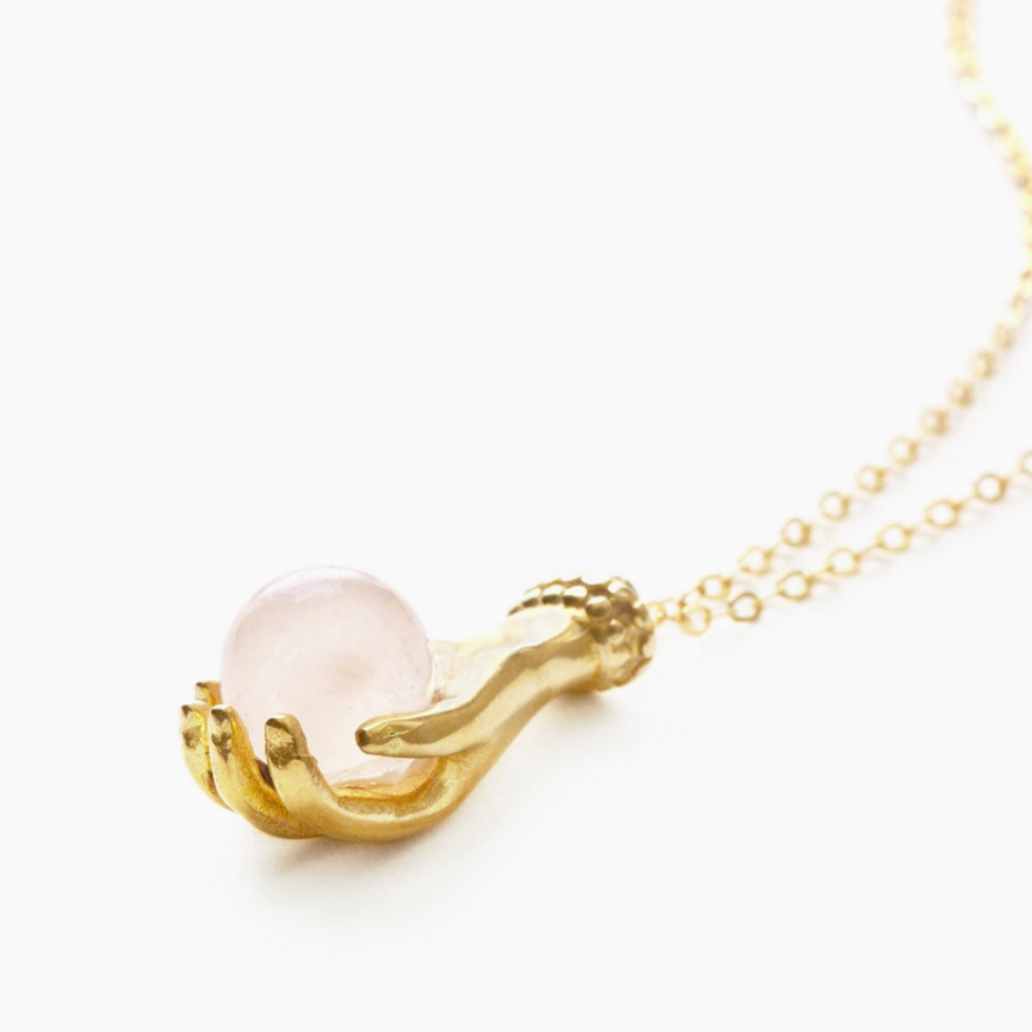 Cast in jeweler's brass the hand hangs on 20" 14/20 gold fill chain.