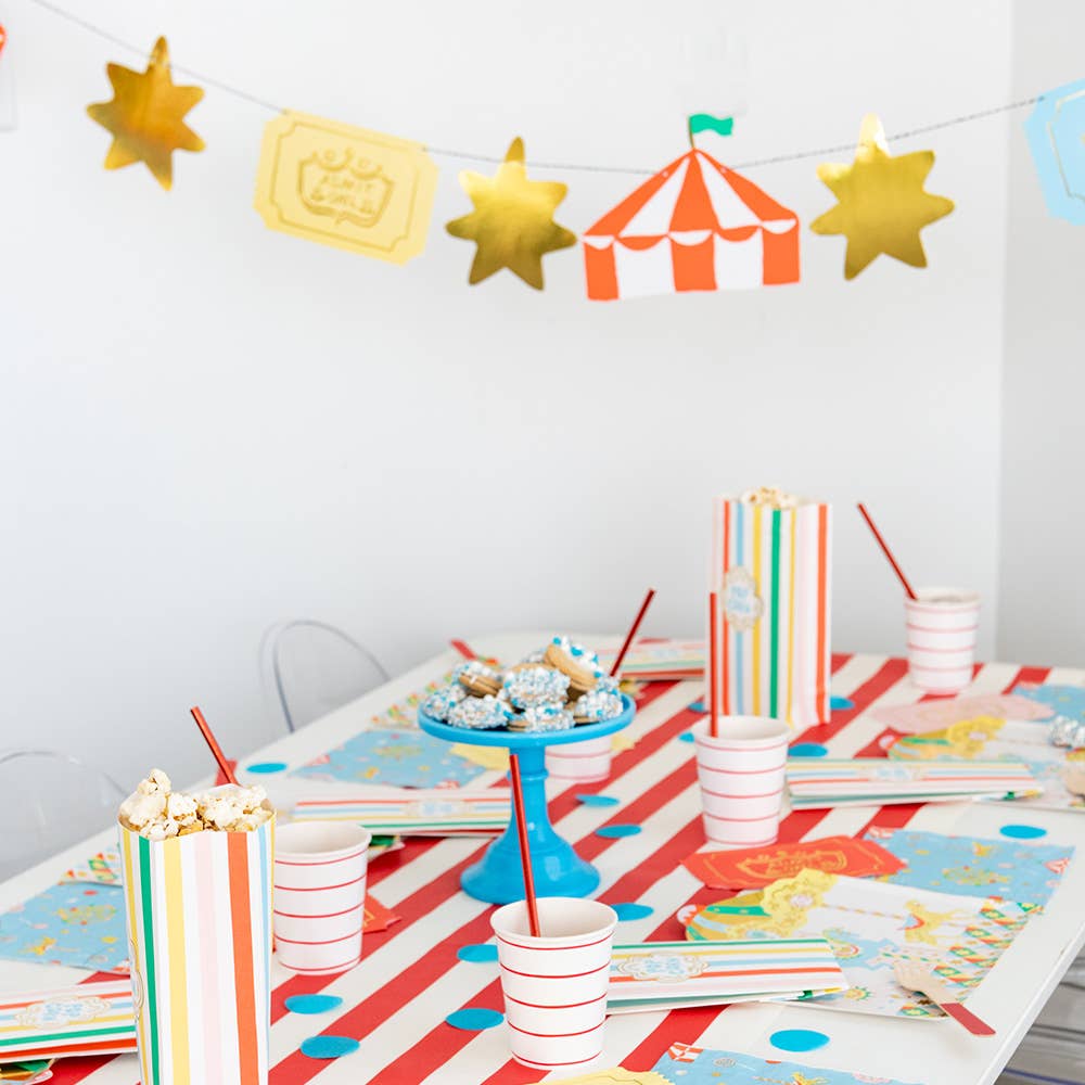 Carousels and cotton candy...oh my! Featuring carnival-inspired colors and pops of gold foil, these thingamajigs bring all the fair fun! We think they're perfect for fair, carnival, and circus parties! What exactly are thingamajigs, you ask?! They are our favorite do-it-all party decorations! String them together to make a garland, attach them to balloons, hang them on the wall...you decide!