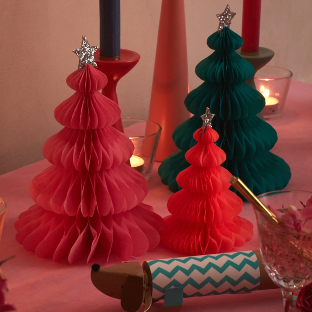 These honeycomb trees by Meri Meri, make beautiful decorations to place on your party table or around your home. They are crafted from tissue paper and are each topped with a star sprinkled with shiny silver plant based Eco glitter.