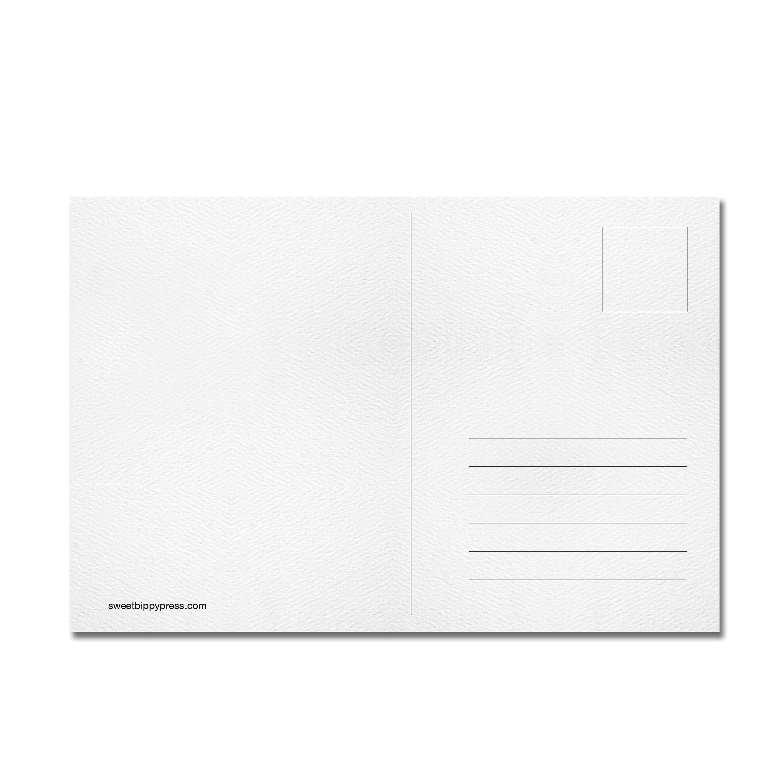 Postcard printed on beautiful white Felt Weave card stock for a retro feel.