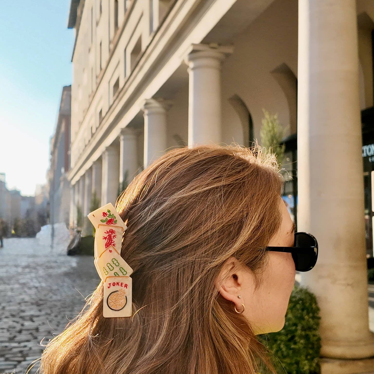 Our Mahjong claw is hand painted by our Solar Eclipse artists. Carefully crafted from cellulose acetate - an eco-friendly, biodegradable material made from recycled wood pulp. The claw is double sided, for perfect look from all angles! Original design you won't find anywhere else!
