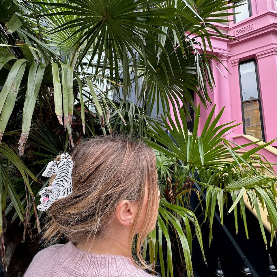 Our Tiger claw is hand painted by our Solar Eclipse artists. Carefully crafted from cellulose acetate - an eco-friendly, biodegradable material made from recycled wood pulp. The claw is double sided, for a perfect look from all angles!