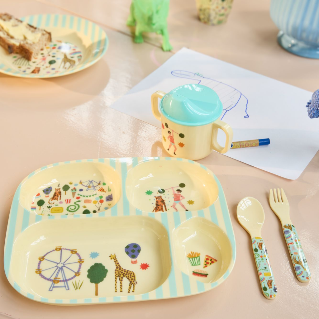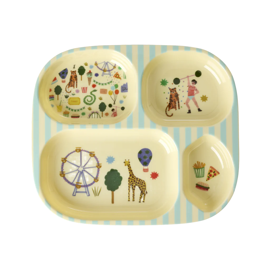 Melamine Kids 4 Room Plate - Fun Fair Mint Print