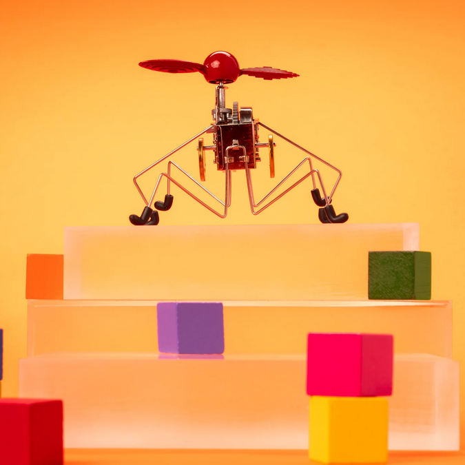 Carlo Maria Pintacuda was a legendary Italian race car driver and the inspiration for this wind-up that bares his name. The plucky and unpredictable spirit of a feisty Italian race car driver is re-imagined with our Pintacuda wind-up. This wind up has legs at different heights, which allows the Pintacuda to hop about and appear to take flight. The propeller key can be wound with just one finger, and you can slightly change Pintacuda’s behavior by bending the wire legs gently near the body or the knees. This is a feisty one.