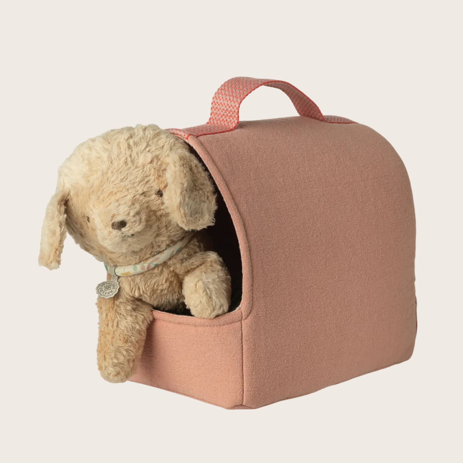 Extend the story and playscene for your soft puppy with beautiful accessories. This carrier is made to carry your friend all around very easily. It includes a pet ID so it is easy to see who the carrier belongs to.