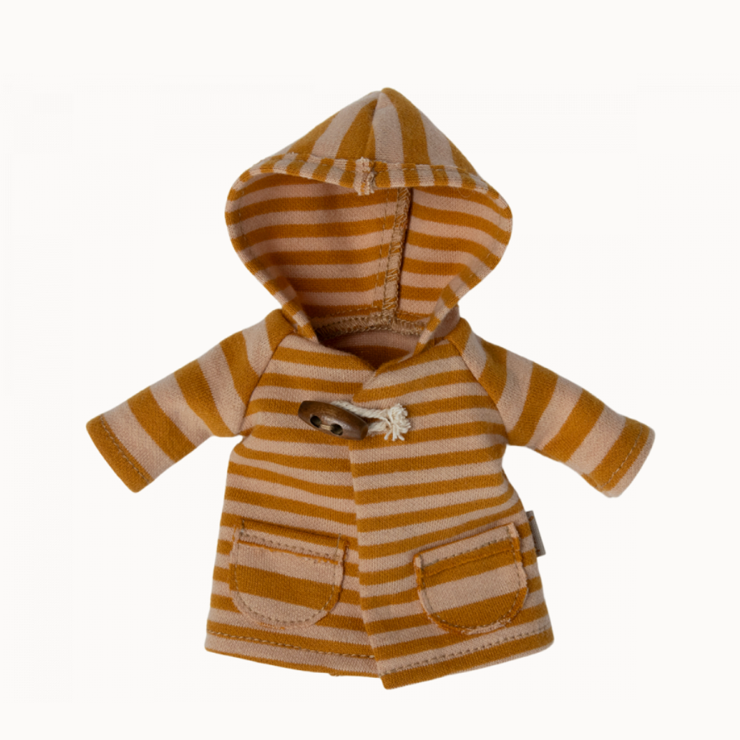 Dress up teddy mum with a warm coat for the cold days. This coat is made in soft color tones and has a small button closure on front.