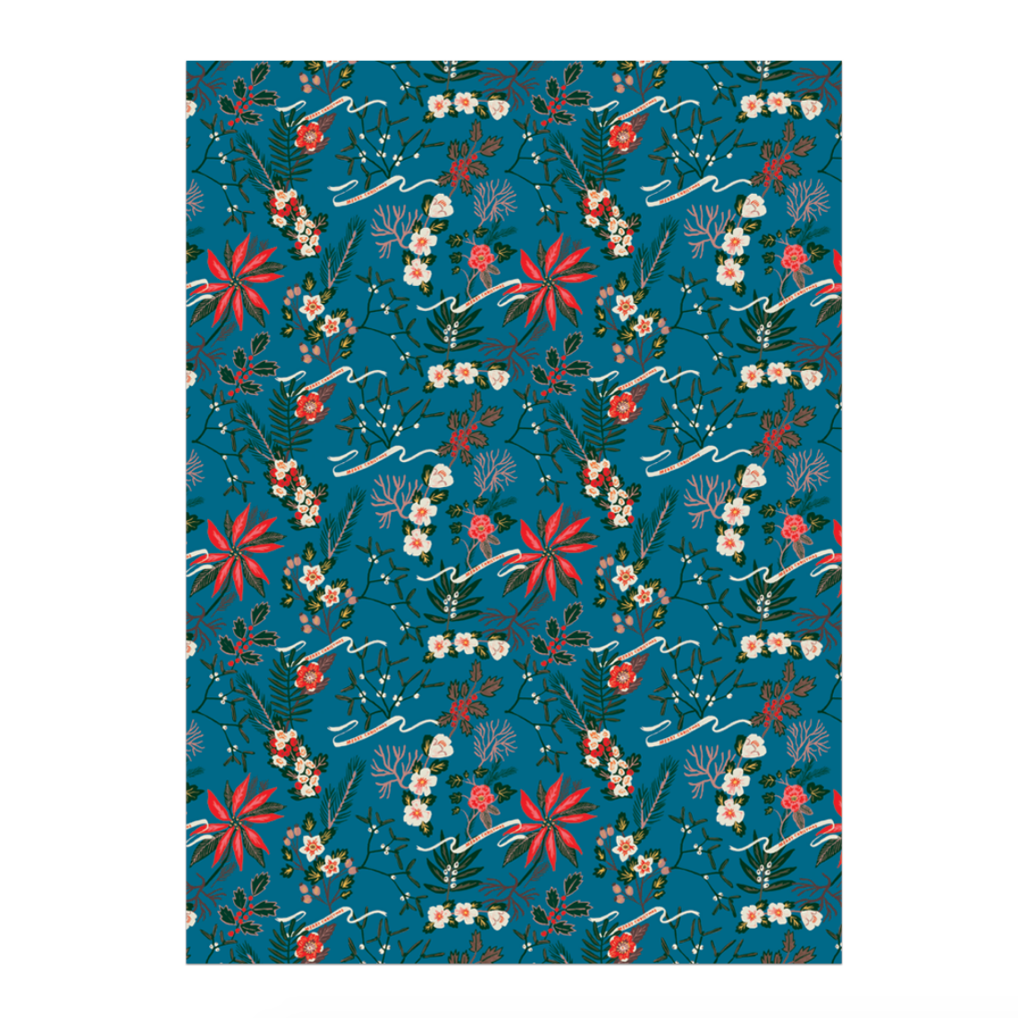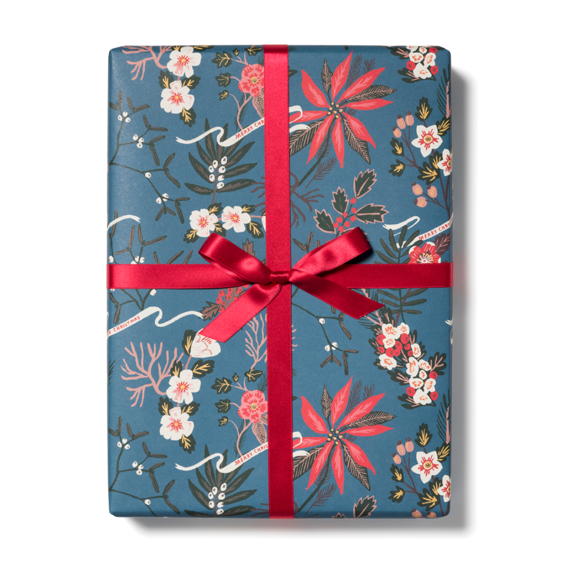 Blue Poinsettia Gift Wrap Roll -roll of 3 sheets