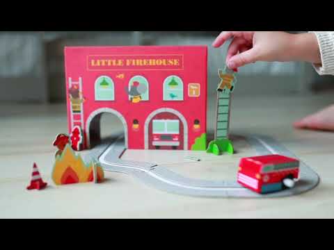 Wind up the fire engine and watch it zip around the fire station with this little Wind-Up and Go Play Includes a double-sided Fire Station, a wooden wind-up fire truck, 8 track pieces and 12 pop-out and play pieces. Plastic free keepsake packaging, with cotton cord carry handle. Printed with vegetable inks on FSC paper. Ages 3+.