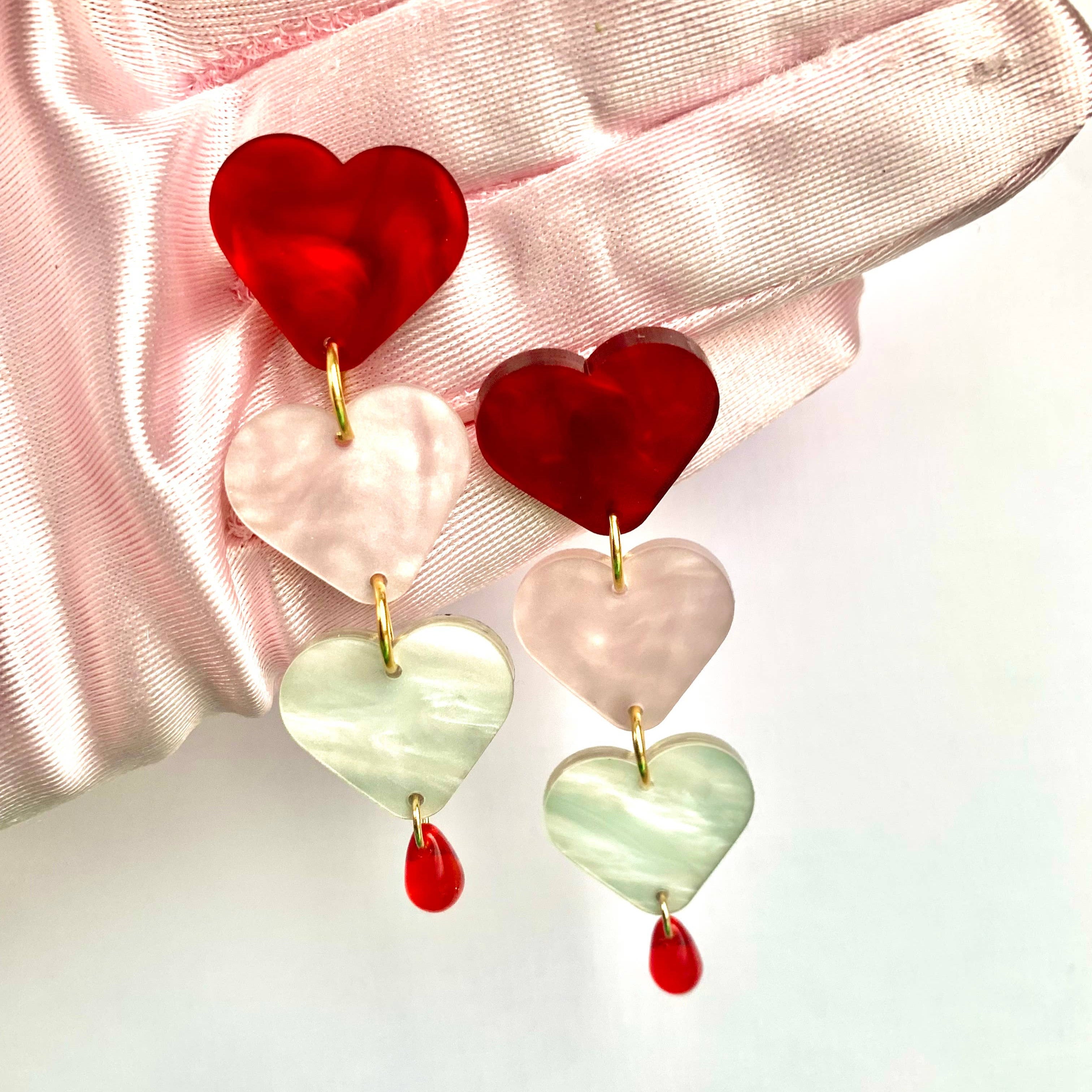 Show your love with these sweetheart earrings! Made from an original design and laser-cut acrylic. Each piece is handmade, so slight differences can be expected. These are finished with hypoallergenic, anti-tarnish gold-plated earring posts.