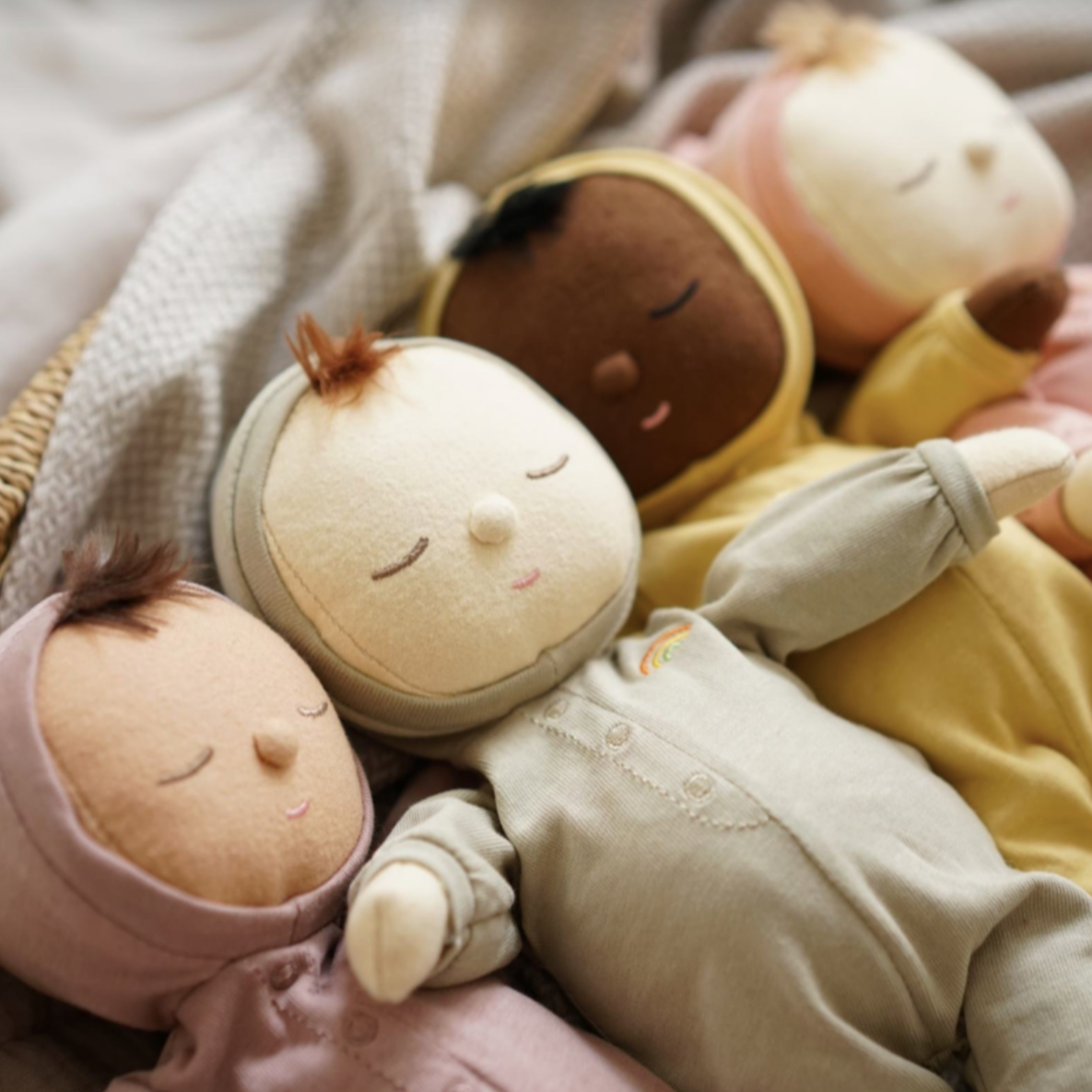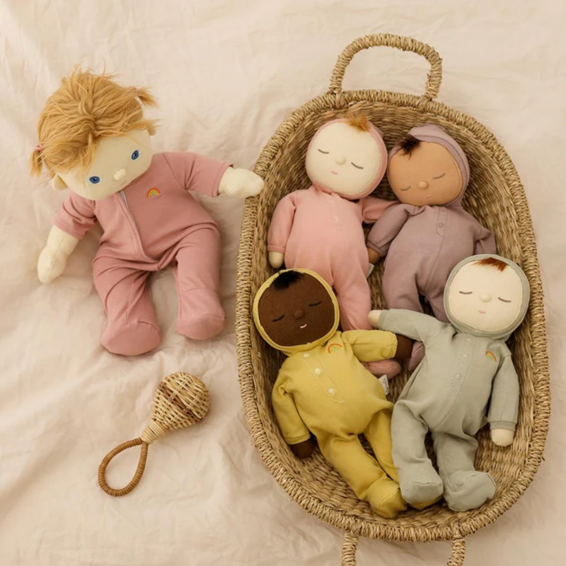 Olli Ella's little Dozy doll’s have full pudgy bellies and the softest limbs. Please make sure to cradle their heads because they are newborns. The Dozy’s are perfect for the only child expecting their first sibling. With the floppy limbs they really teach children how fragile our new babies are. Say hello to Pip! Your baby’s first baby and lifelong friend with the perfect amount of squish for cuddles and play.