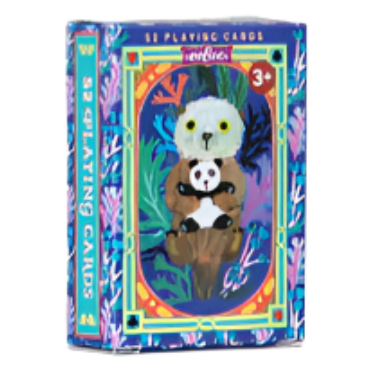 • Colorful playing card set with panda design on a white background
