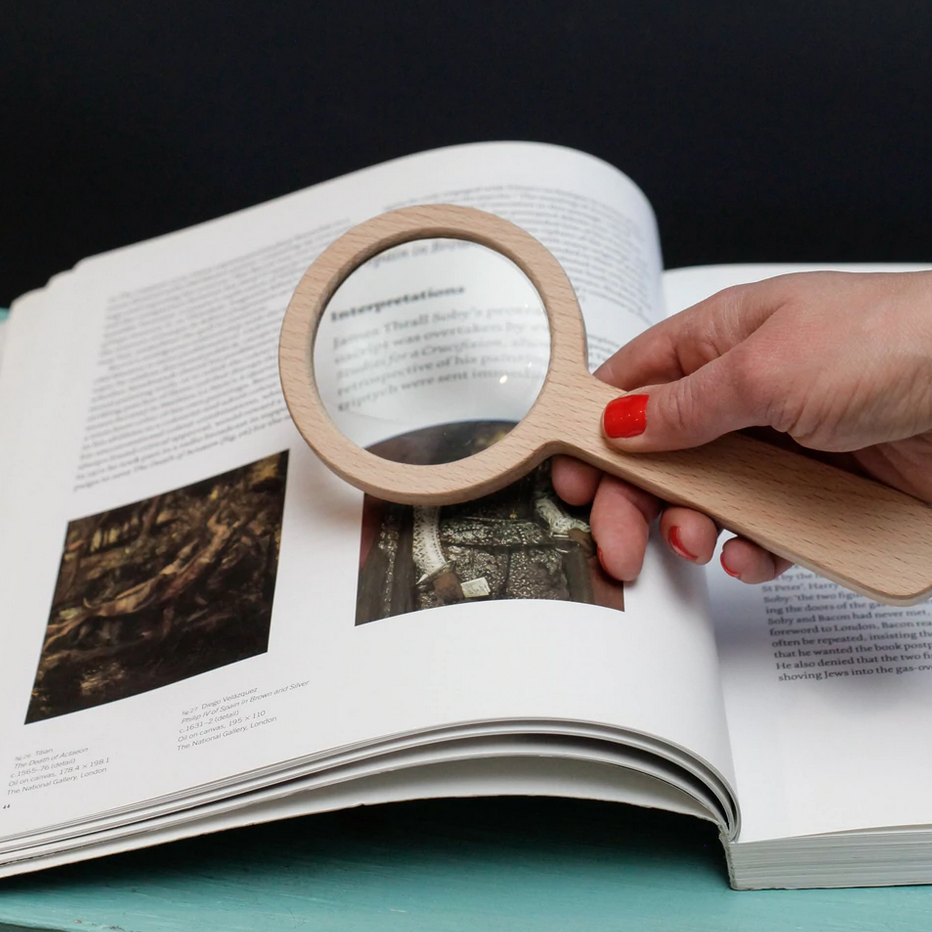 Perfect for the curious and curious at heart, this magnifier features 3x magnification and a beechwood frame.