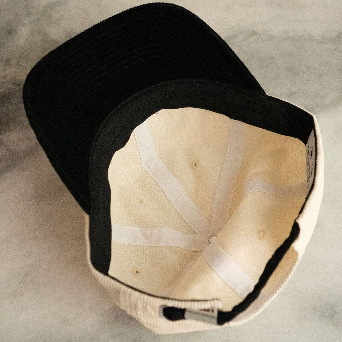 This is a six panel, unstructured, low-profile baseball cap aka dad hat in two tones of ice-cream-inspired off-white and liquorice black. A gorgeous, high quality, embroidered patch has been securely sewn onto the hat in-house. Fully adjustable using a metal sliding buckle at the back.