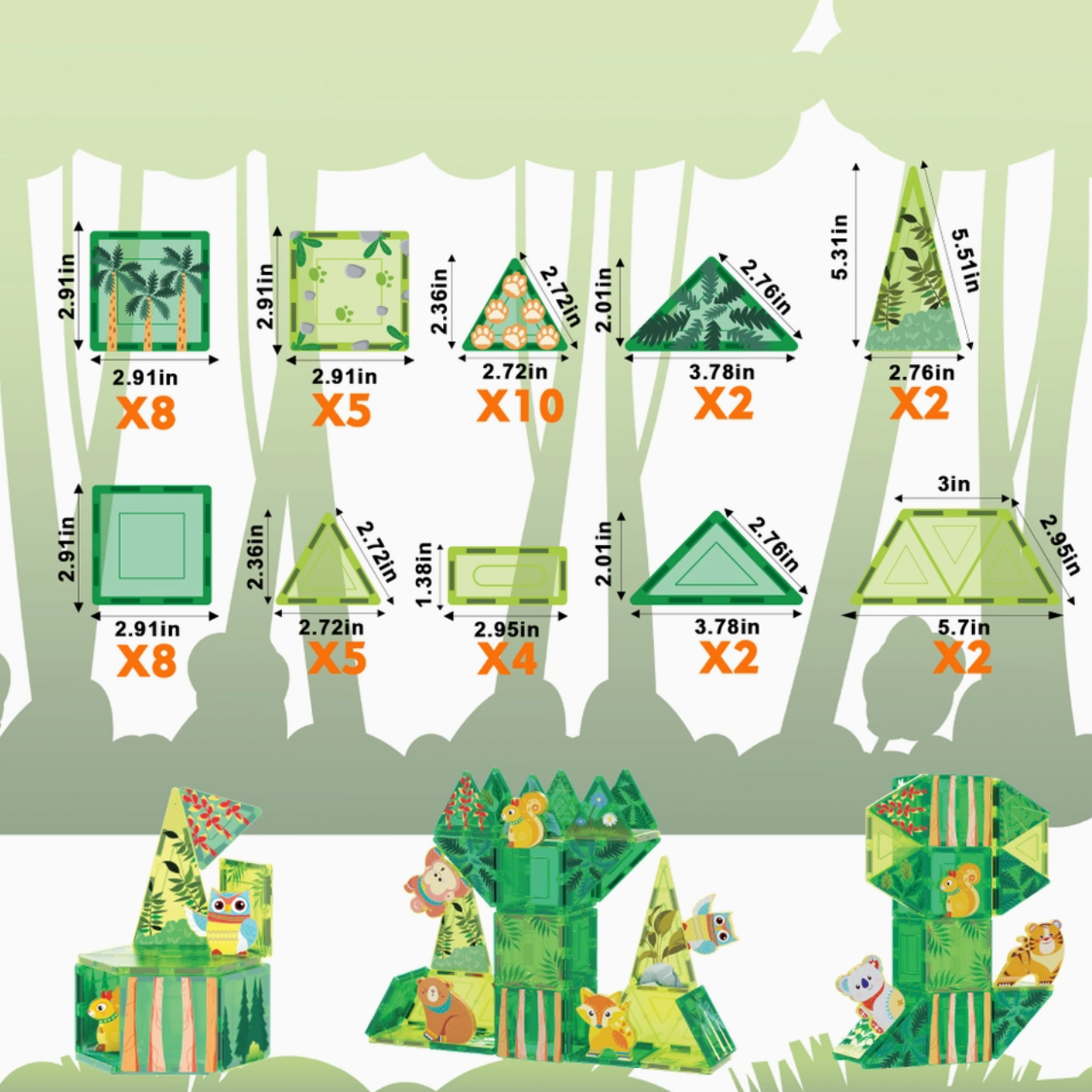 DREAM BIG & BUILD BIG: Entice your child's creativity and imagination with this forest-themed STEAM educational playset that includes 48 magnet tile pieces (27 theme printed) and a wild cast of 8 magnetic forest animals, bear, fox, monkey, koala, tiger, squirrel, panda, and an owl. Create stories with new woodland friends, and bring home the fun of nature, all while learning, one magnetic piece at a time.