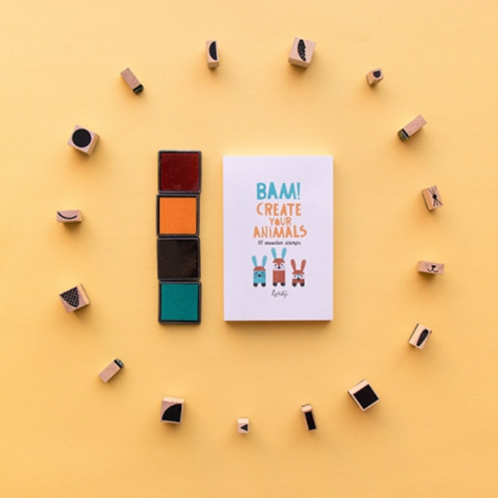 Create your own animals with stamps as you want! Lions, elephants, whales, fish, giraffes... and as far as your imagination goes! 16 wooden stamps with notebook included for your wildest creations!