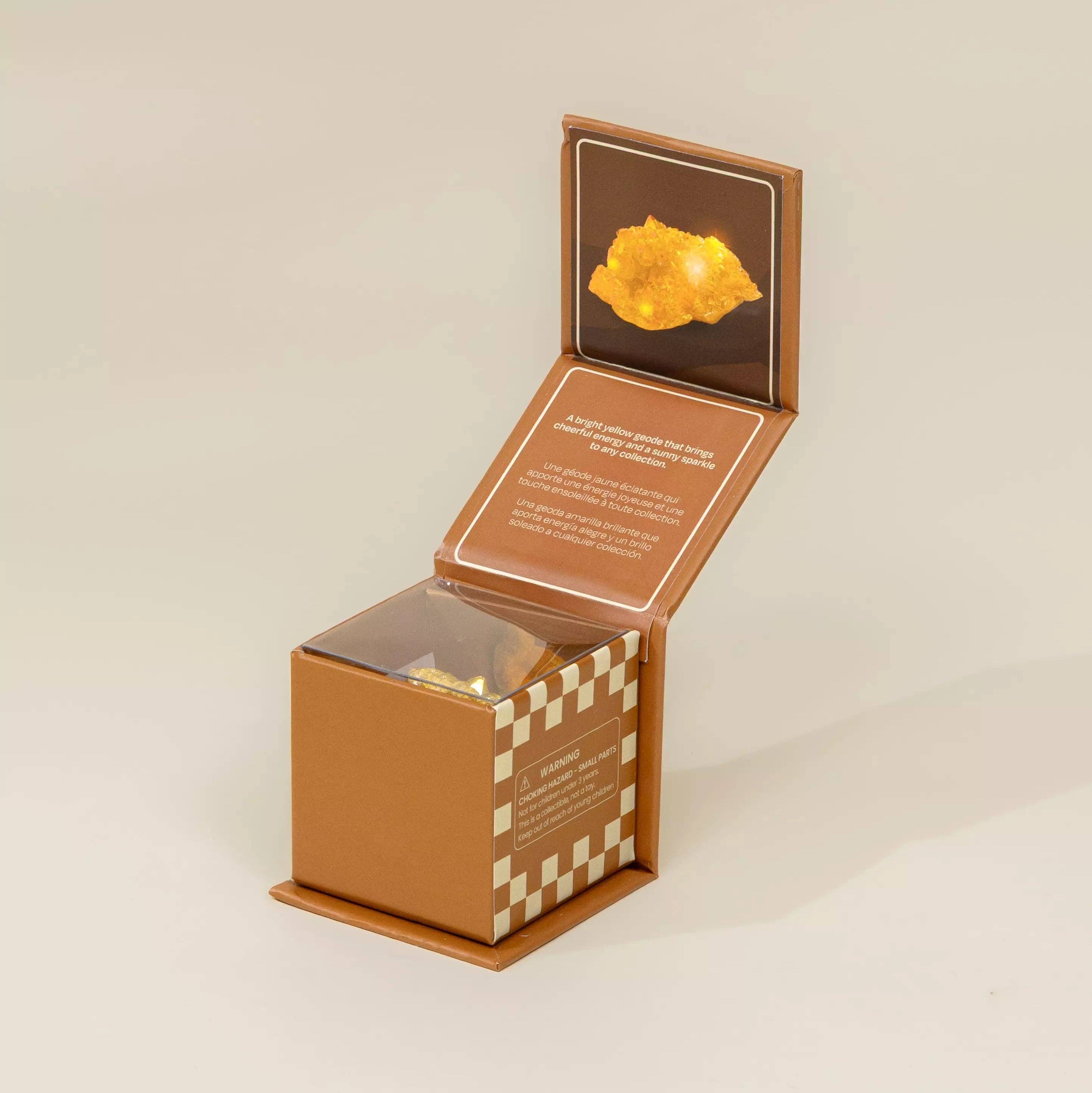 Discover a burst of sunny energy! This vibrant Yellow Geode is a joyful gem that brightens up any collection. Housed in a beautifully designed collectible box, it’s the perfect keepsake for young rock enthusiasts and curious explorers.