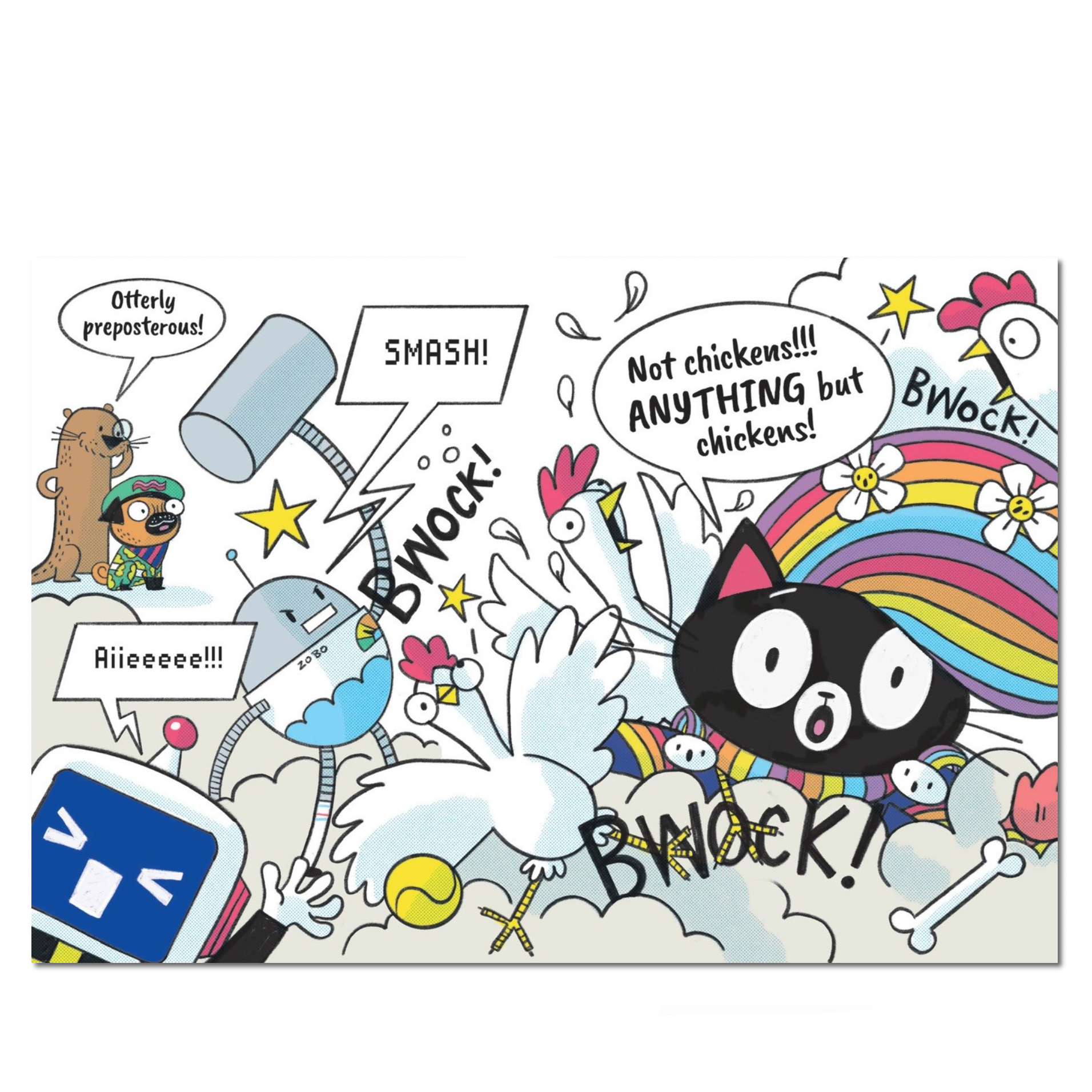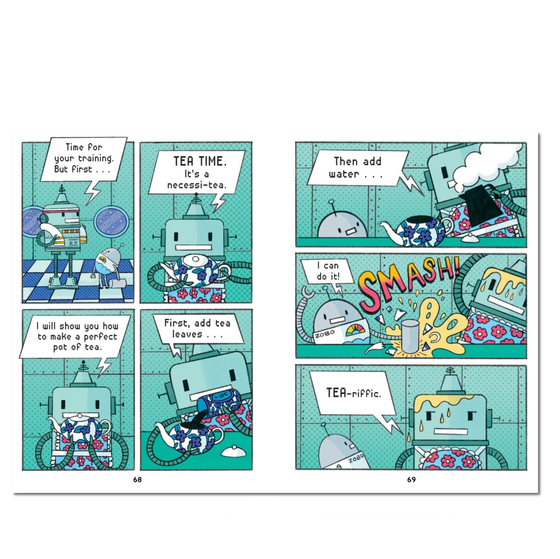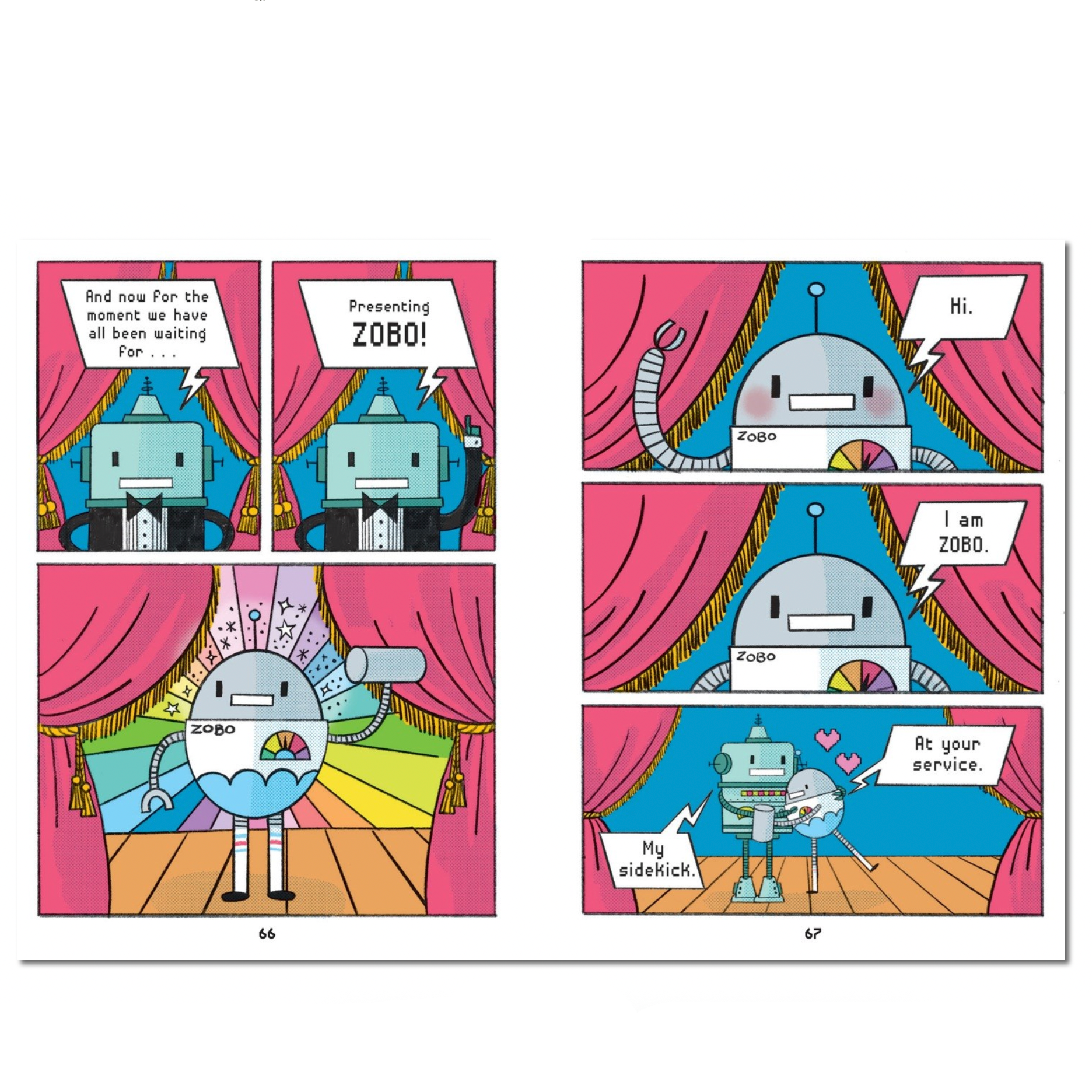 Alert! Alert! The Friend Ship’s been hacked! A pack of evil pugs have infected Bobo with a computer virus and taken Astrid and Stella hostage! Unable to rescue his friends alone, Bobo builds a sidekick—Zobo, a friendly new robot with a talent for smashing things. The two will have to work together to free Astrid and Stella from Pugnacious D and his hungry hounds.