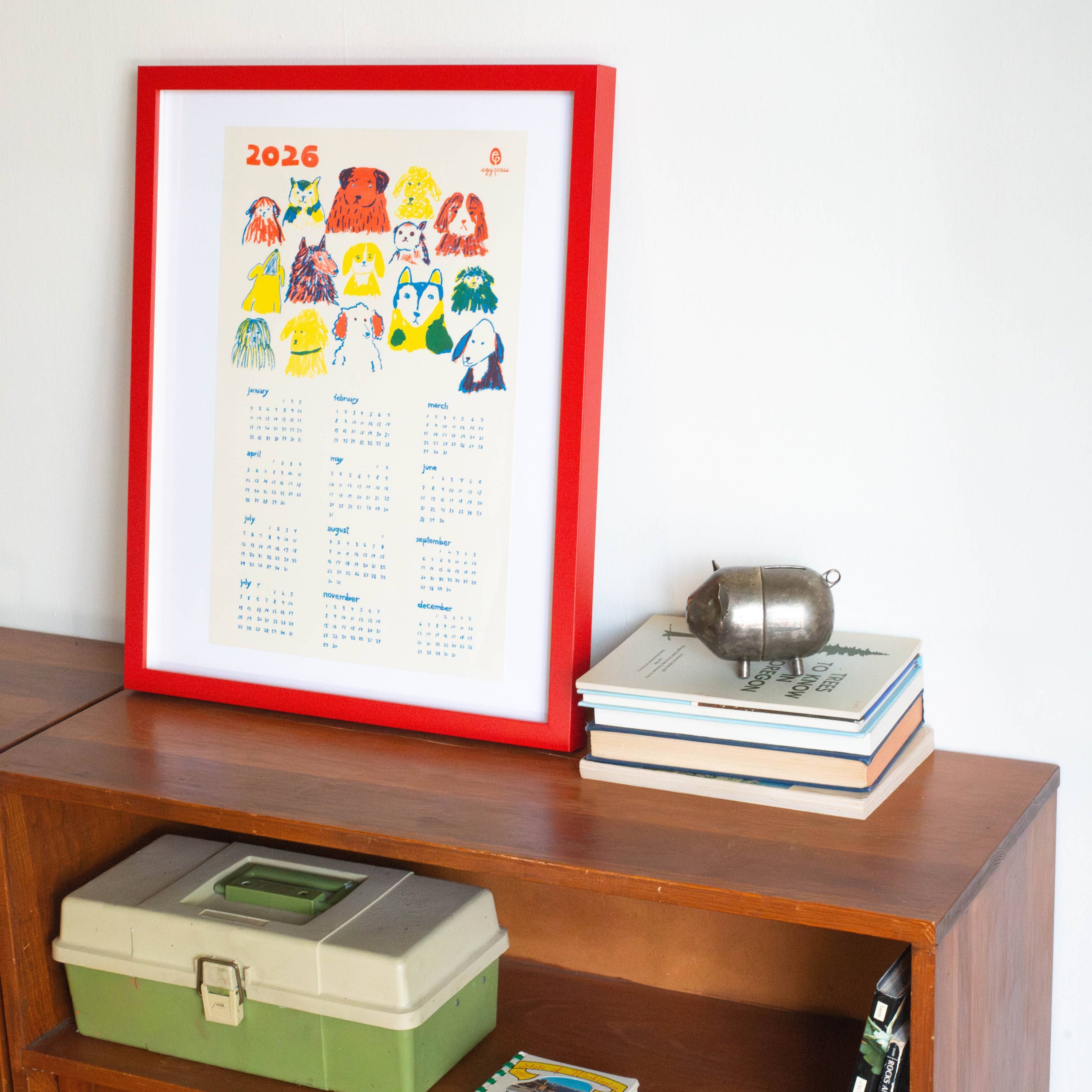 The perfect at-a-glance calendar for dog lovers. This 2026 reference calendar is printed on toothy, textured cover stock with vibrant Risograph inks. Frame it, hang it, or tack it up in your office or kitchen for a bit of cheeky & elevated decor.