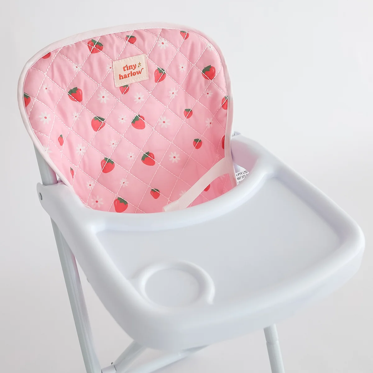 It's mealtime! It's easy with the new Tiny Harlow doll high chair. Specially designed to fit most dolls, it allows your child to make their playtime even more realistic. Colorful and practical, this high chair is the perfect addition to your doll accessories, for unforgettable playtime moments. Product details: - Model: Strawberry Picnic - Designed to fit most dolls - Folds flat for easy storage - With straps on the seat to support the doll - Quilted fabric - Recommended for children 3 years and older Care instructions: - Surface cleaning recommended. Designed in Australia