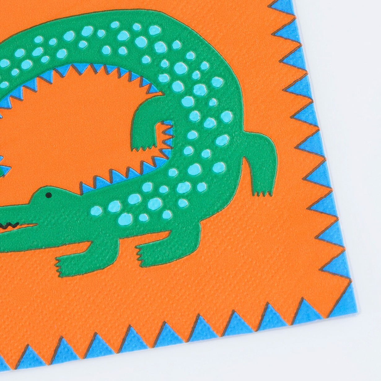 • Children's napkin with a green alligator on an orange background