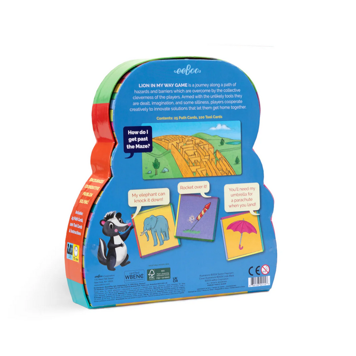 Using unlikely tools, imagination, and some silliness, players cooperate creatively to meet challenges and get home together. Art by Saxton Freymann, with cover art by Linda Bleck.