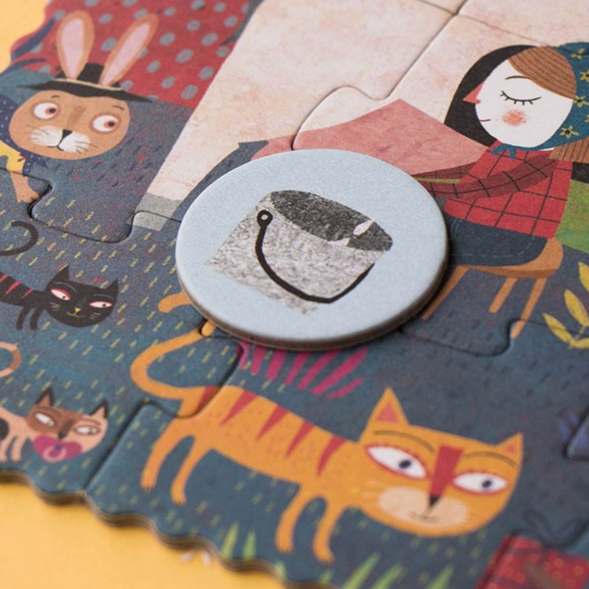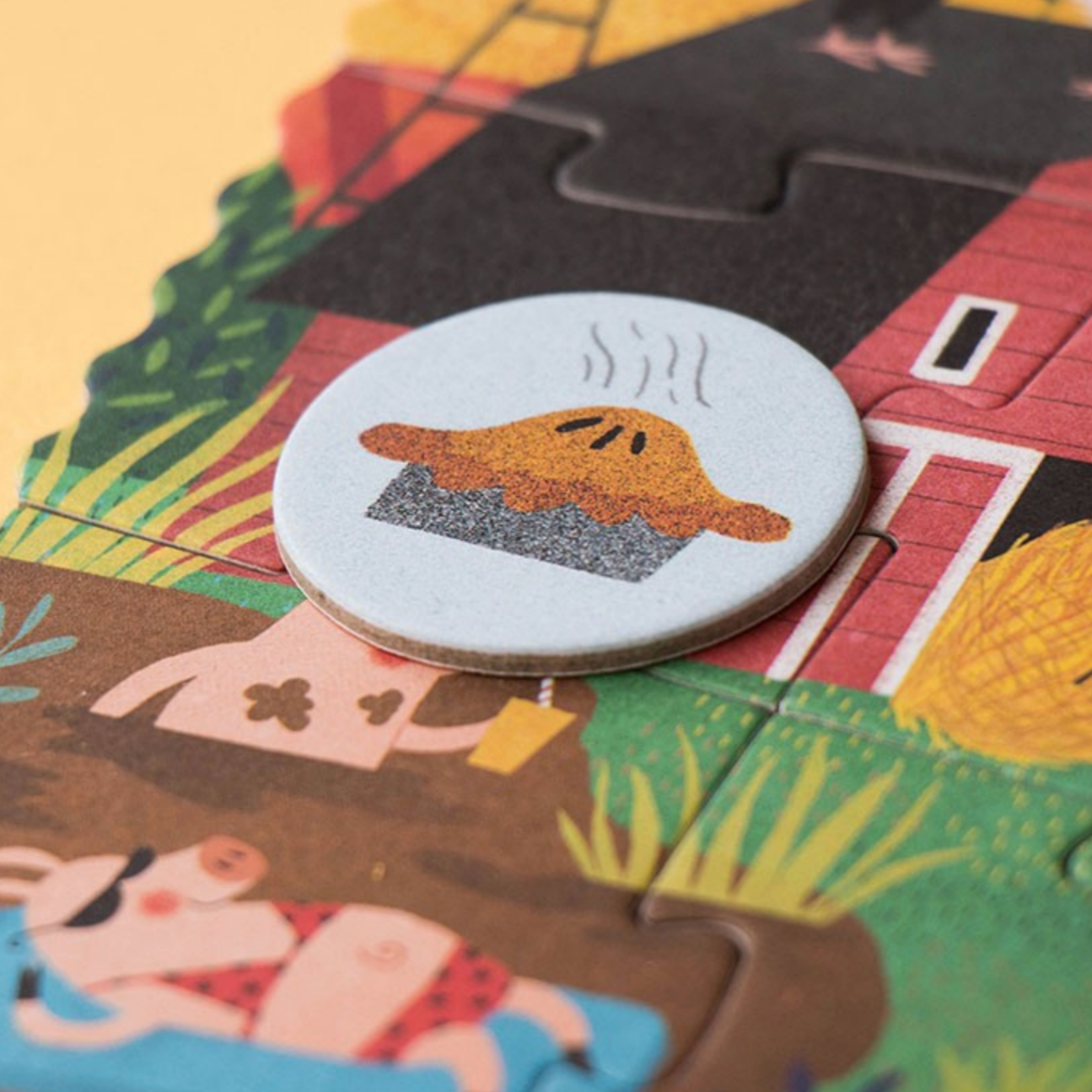 A small 24-piece puzzle of a farm and its animals. A pocket-sized observation game you can take it everywhere you go.