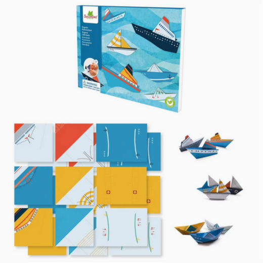 Sycomore Pockets – Origamis – Mummy Do Little Boats – 5y+ Let your little sailor fold, craft and set sail with this delightful origami boat kit from Sycomore! Perfect for children aged 5 and up, this fun-filled portfolio invites young creators to explore paper folding, storytelling and imaginative play. Inside the tidy pouch you’ll find beautifully patterned sheets ready to become boats, plus clear step-by-step instructions. This set is ideal for quiet craft time, rainy days, or as a travel-friendly creative activity. It encourages fine motor skills, patience, and the joy of hands-on creation. Once folded, kids can line their boats up, stage imaginary sea voyages, or even float them (if suitable paper and water-safe conditions allow) for added fun. Specifications: * Recommended Age: 5 years and up * Size:06 × 8.46 in × 0.59 in * Material: Printed origami paper sheets + instruction booklet + carrying pouch/folder * Weight (lbs):22 lbs * Care: Store flat in a dry place; keep away from water and heavy creases; encourage gentle folding and reuse of any leftover sheets