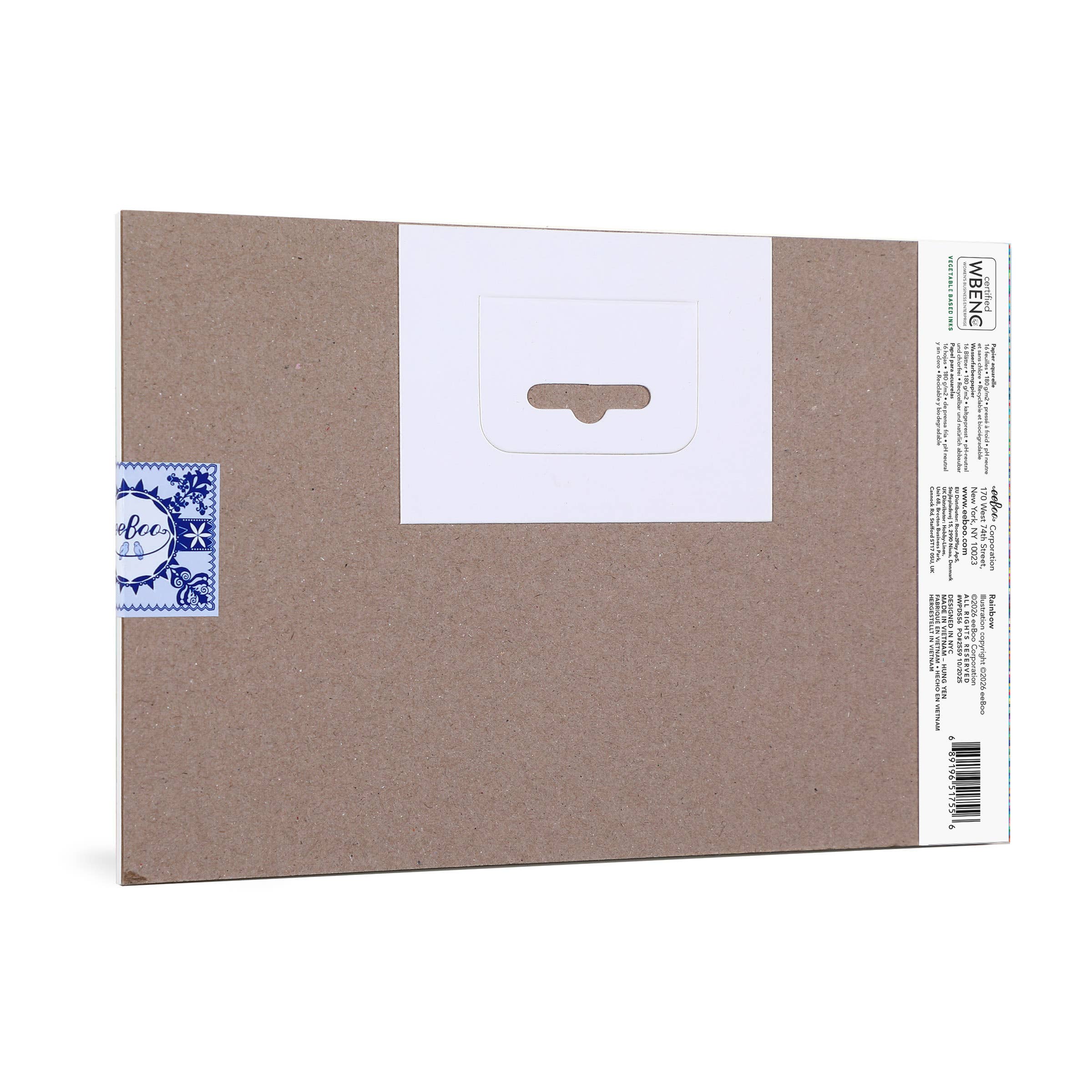 High quality watercolor pad with natural pH and chlorine-free paper. A beautiful craft supply or gift featuring vivid patterned color. Pair this with eeBoo’s Rainbow 18 Double-Sided Watercolor Pencils.