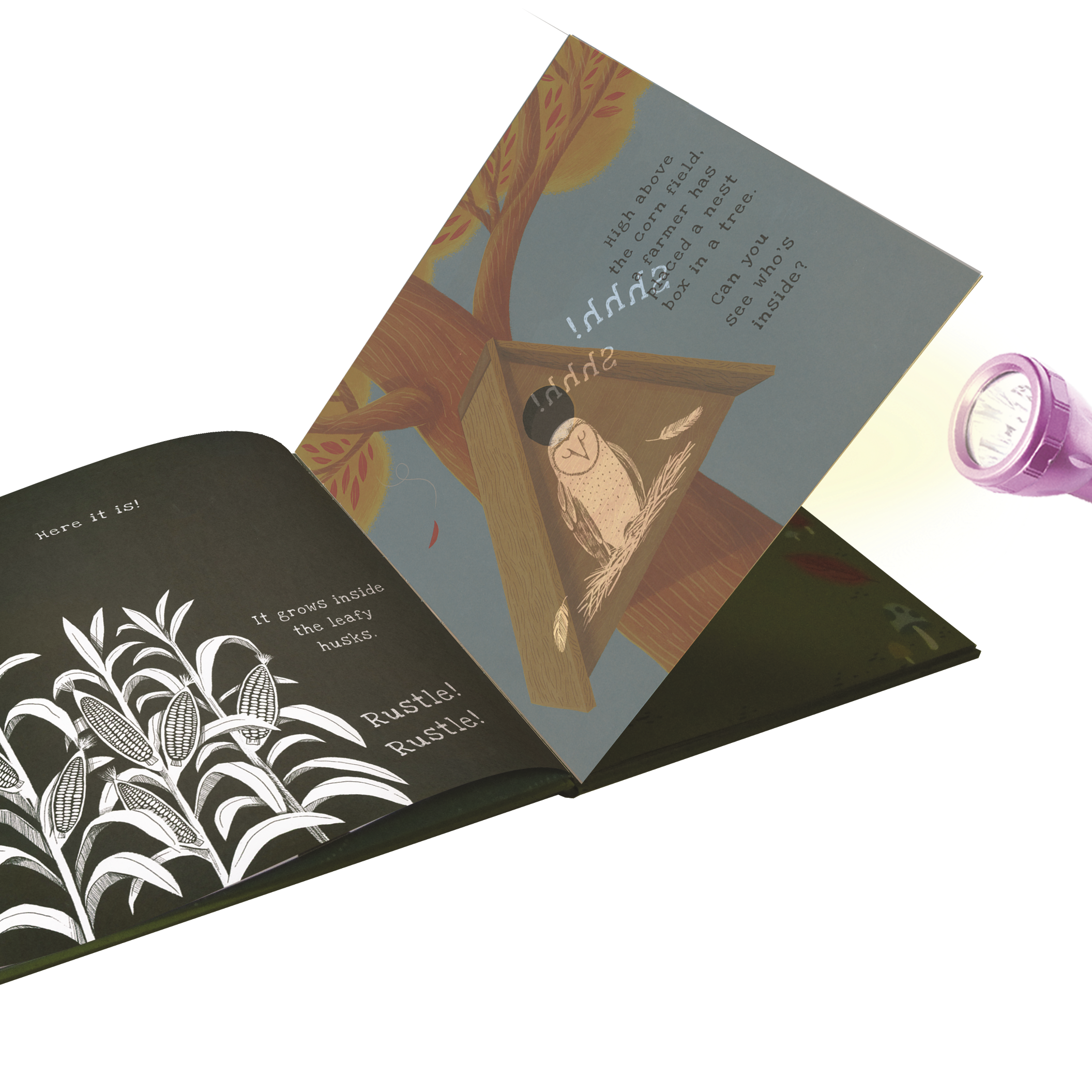 From feeding the animals in winter to harvesting the crops in fall, take a look at what happens throughout a year on the farm by shining a light behind the special see-through pages.