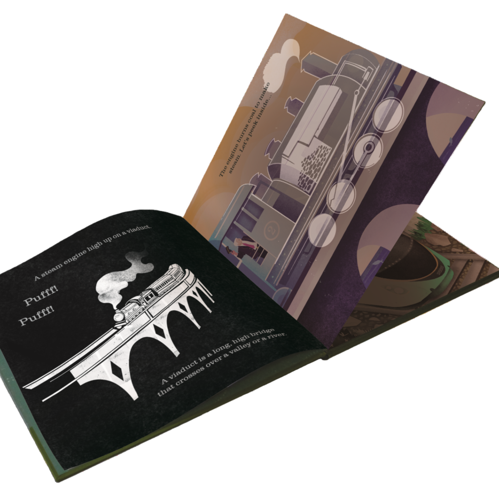 Young engineers will delight in exploring all the hidden secrets On the Train. They simply hold the pages to the light to "see-through" the box cars of a freight train, the cabin of the passenger train, and much more. It's an interactive, educational experience that will have them clamoring for more!