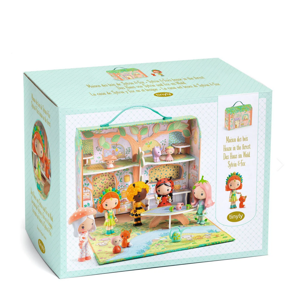 Hidden away in the forest, Sylvia and the adorable Fox’s wooden house is truly a peaceful haven surrounded by nature. Open the carry case to reveal a comfy tiny house built around a tree with 2 bedrooms, kitchen, living room, table and, outside, a relaxing countryside scene with a river passing nearby. Everything you need to get in touch with nature!