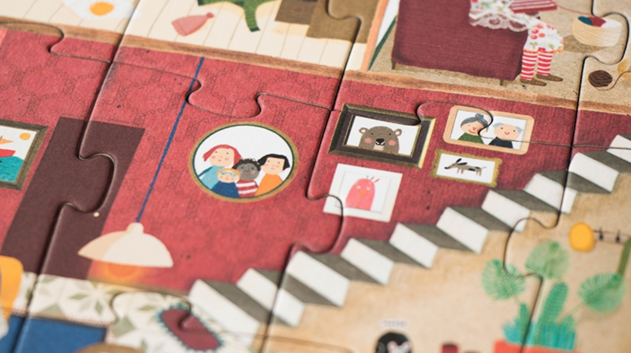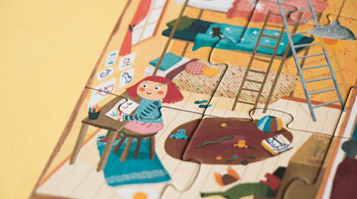 We welcome you to the home of Londji! A 36-piece reversible puzzle that shows two scenes from the same house. On the one hand we see the outside of the house and on the other we see inside where we will know all the corners and the inhabitants that live in it!
