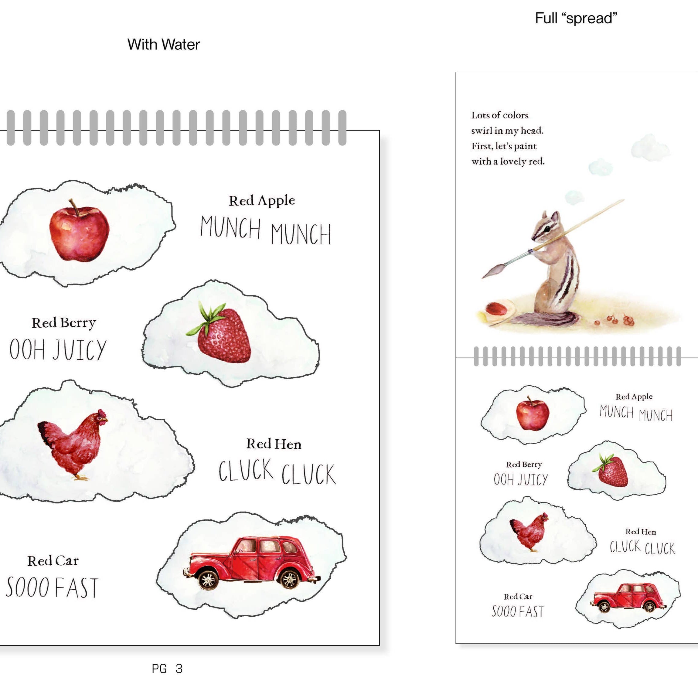 • Includes a chunky, easy-grip water pen that stores neatly in the spiral-bound format—great for travel displays
